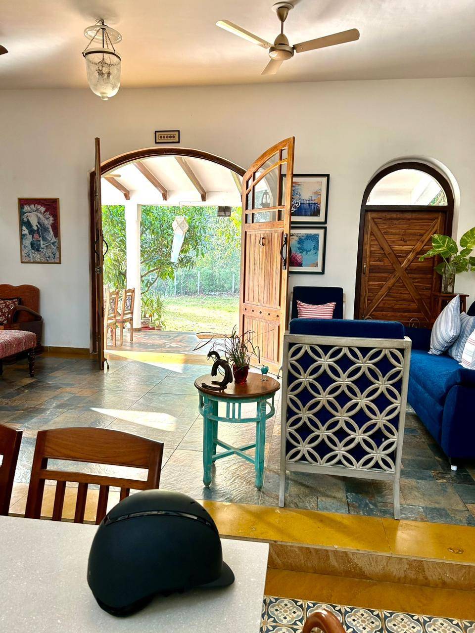 Our focus has always been to create a safe and happy environment for everyone who visits us. It’s been our intention to make it special, a place where you can belong and truly be a home away from yours. Every room has a different feel and depending on the numbers we divide the space for all our guests, all the rooms are air-conditioned and there is WIFI available. Holidays, the house is bursting with the children and we just love that. Most children travel alone and we become their foster parent, friend, guide, teacher etc. We balance between the fun and discipline as that is of utmost importance. After riding everyone comes for breakfast, we eat our lunch and dinner together, our meal times are early as our day starts early.