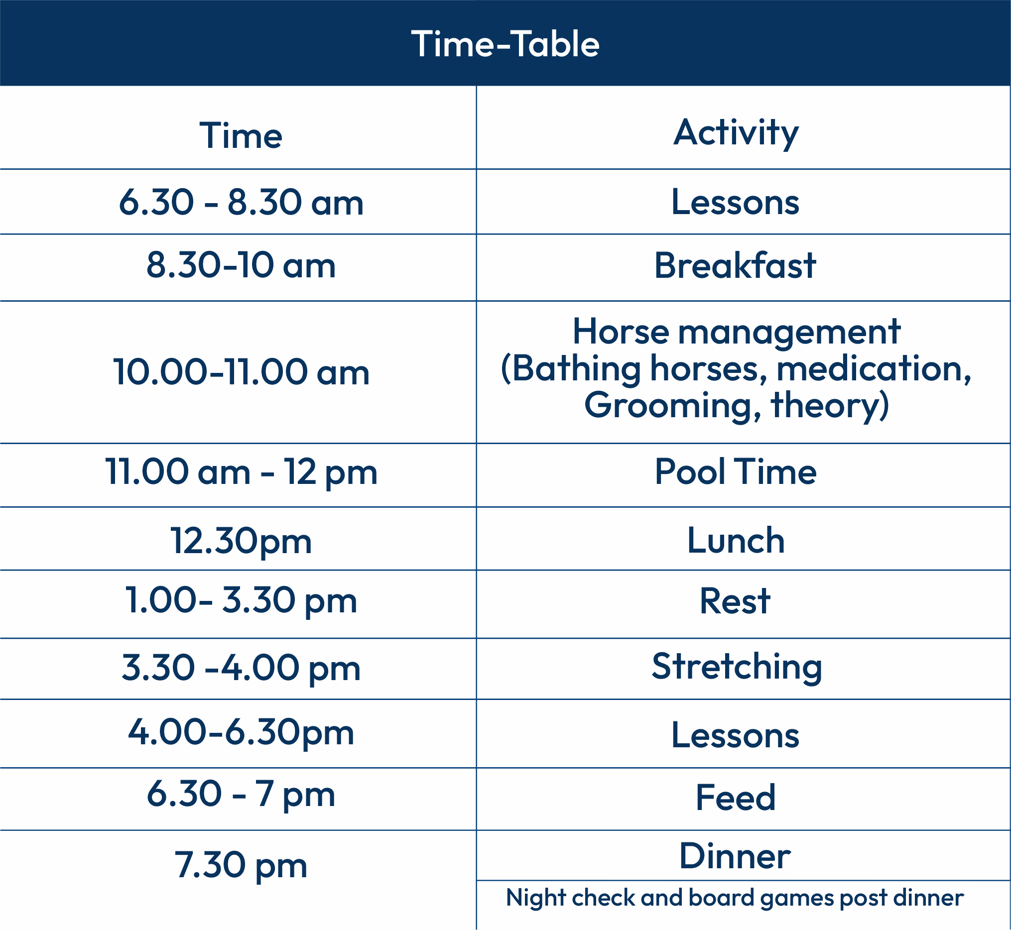 We offer certified weekend and weekday packages at our charming homestay. You could be a beginner or a professional rider and we offer a tailor-made program for everyone.